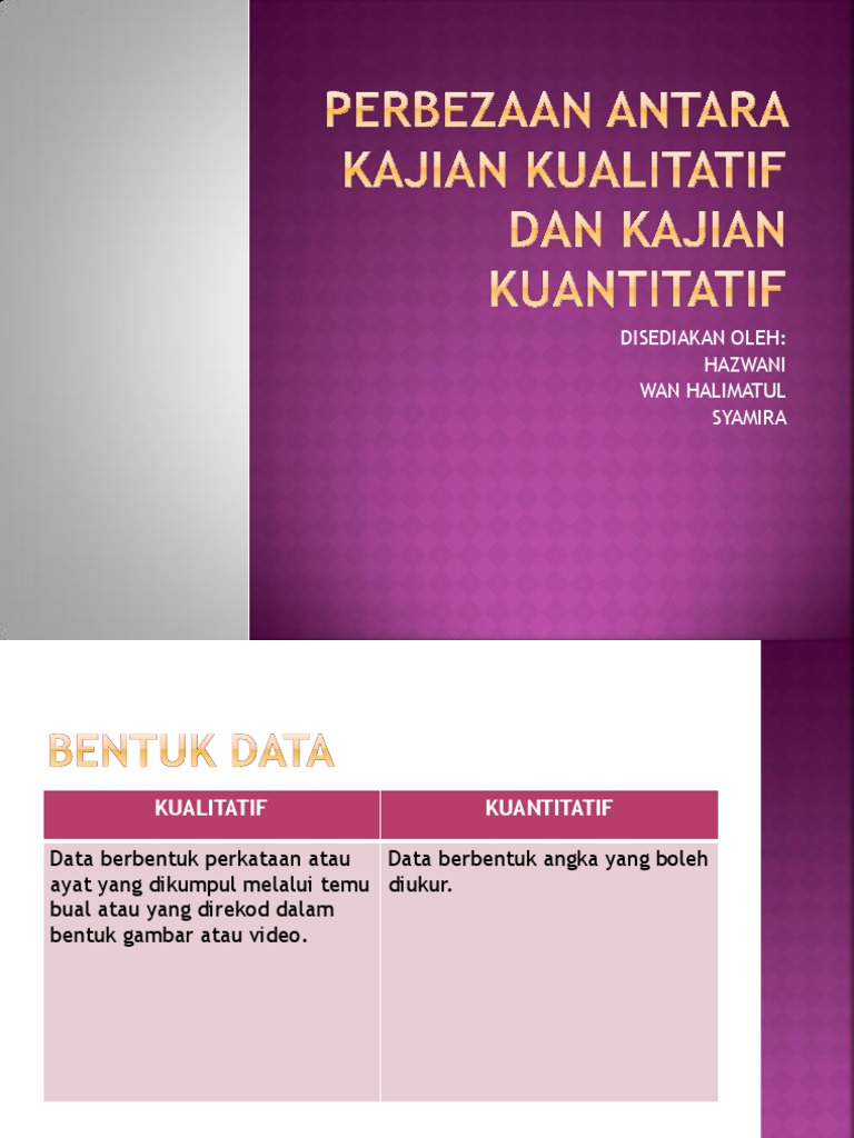 Perbezaan Kualitatif Dan Kuantitatif : Karena metode penelitian kualitatif lebih berbentuk pengujian dan pengembangan maka pengumpulan data sanggup bersama dengan lakukan wawancara.. Tayangan ini membahas perbedaan penelitian kuantitatif dan kualitatif (dasar) juga penggunaan tabel dalam latar belakang masalah#kuantitatif #kualitatif. Alur dari penelitian kuantitatif sendiri sudah direncanakan sejak awal dan tidak dapat diubah lagi. Berikut adalah tabel singkat perbedaan kedua metode penelitian ini. Perbedaan kualitatif dan kuantitatif paling akhir sanggup diamati berasal dari segi pengumpulan data yang dilakukan. Beberapa hal di atas adalah 6 perbedaan penelitian kualitatif dan.
