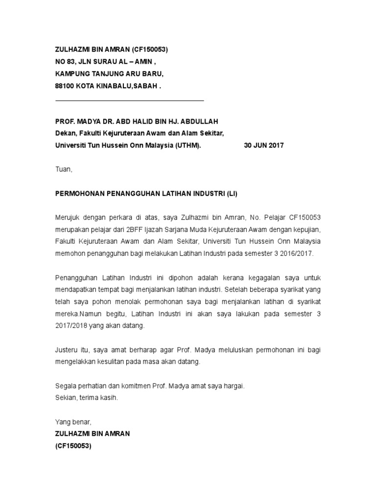 Surat Penolakan Latihan Industri - Upli psa contoh contoh surat penolakan tawaran li facebook.. Ikut contoh surat tolak tawaran untuk latihan industri, internship atau praktikal. Pemohonan ini adalah bagi pelajar yang ingin mengikuti latihan industri di ibu pejabat jkr malaysia, ibu pejabat jkr negeri dan jkr daerah (kecuali jkr selangor, jkr johor, jkr perlis, jkr sarawak dan jkr sabah). Home » contoh surat » surat penolakan pesanan yang baik dan benar. Tuan/puan/encik/cik, sebab penolakan penempatan latihan industri saya seperti nama di atas ingin memberitahu penolakan penempatan latihan industri kepada saya. Tinggal surat dari universiti je.