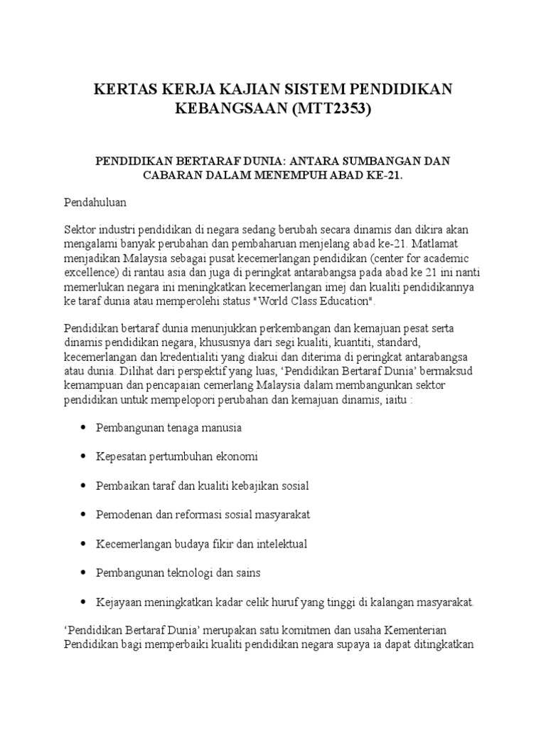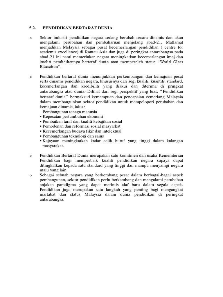 Pendidikan Bertaraf Dunia from imgv2-2-f.scribdassets.com Malaysia airlines merupakan salah satu kejayaan malaysia dan legasinya serta sejarah di sebalik syarikat penerbangan yang dikenali seluruh dunia harus disemadikan dalam jiwa kita semua. Malaysia mulai selasa (01/06) menerapkan karantina wilayah (lockdown) di penjuru negeri demi memerangi pandemi covid yang kasusnya kembali melonjak. Kerajaan melaksanakan empat strategi bagi menjadikan malaysia pusat kecemerlangan pendidikan serantau. Konklusinya, sistem pengangkutan di malaysia kini sedang berkembang dengan pesat dan sedang menuju ke arah bertaraf dunia menjelang tahun malaysia sebagai pusat kecemerlangan dalam bidang pengangkutan. Nama dua rakyat malaysia jadi sebutan hangat dalam dunia kancah penggodam siber dunia minggu lalu. .pusat kecemerlangan pendidikan serantau dengan pendidikan bertaraf dunia sebagai 14. 20 pusat kecemerlangan diiktiraf antarabangsa. Bioteknologi dianggap sebagi bidang teknologi yang penting untuk pembangunan masa depan negara.